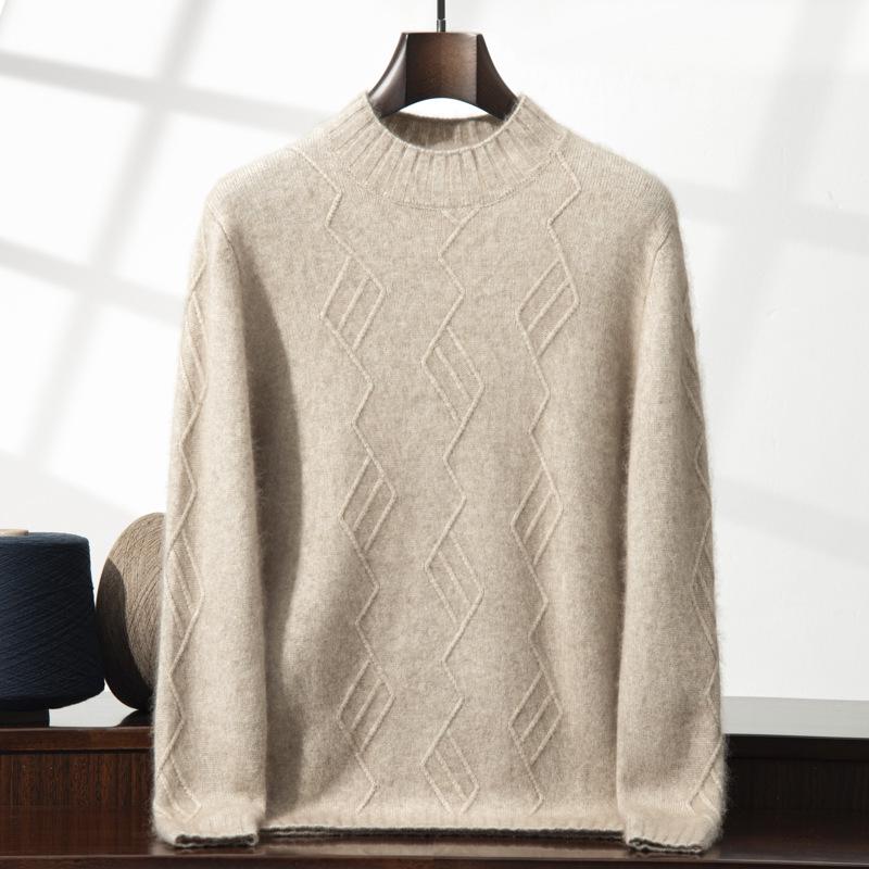 Men's Cashmere Diamond Pattern Round Neck Loose Knit Sweater, Long Sleeve Pullover for Autumn & Winter. — купить товар онлайн с бесплатной доставкой по всему миру!
