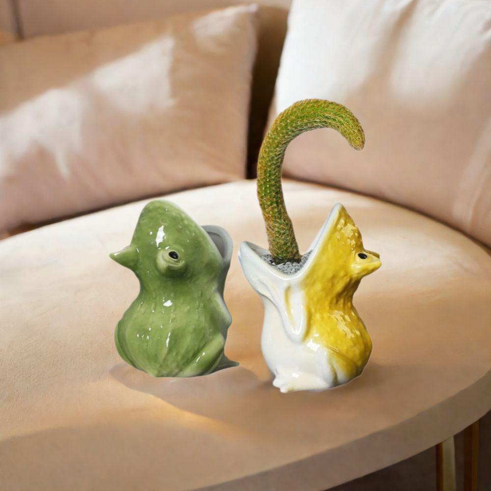 НАДЕЖНОСТЬ И ПРЕМИУМ-КЛАСС: Ваза для горшка с абстрактным растением в форме лягушки изготовлена из высококачественного керамического материала, имеет дренажное отверстие для слива лишней воды, защищает здоровый рост растений и является красивым украшением для дома и офиса.