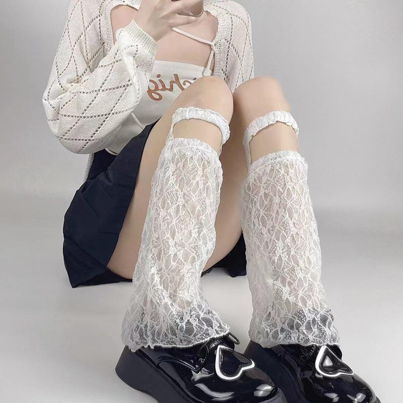 Японские гольфы до середины икры в сетку, Лолита, защита от солнца, летний тонкий стиль, кружево с подвязками.