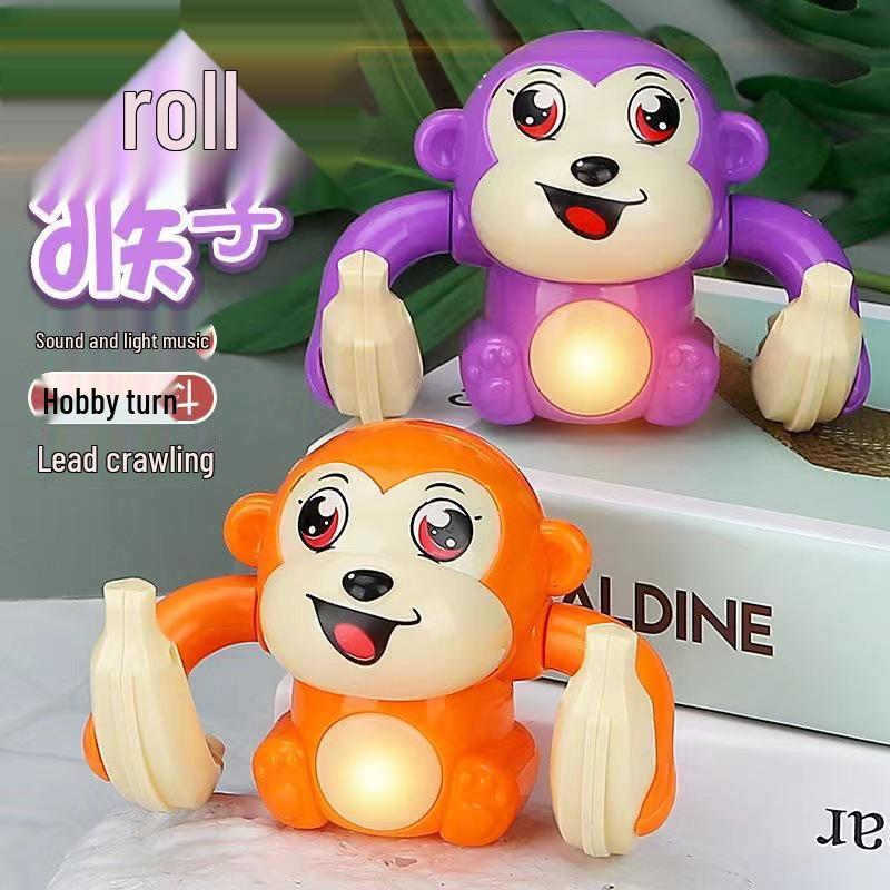 Электрическая игрушка кувыркающаяся обезьянка TikTok для детей – Раннее образование Свет Музыка Кувыркающаяся Ползающая Обезьянка