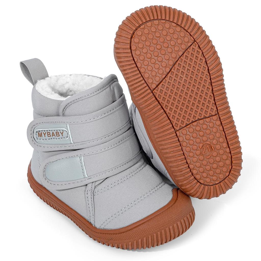 LACOFIA Дутики из овчины для мальчиков и пушистая детская обувь для улицы на липучке, размеры детские, для малышей, для девочек, на флисовой подкладке, теплые, (Серый замок,