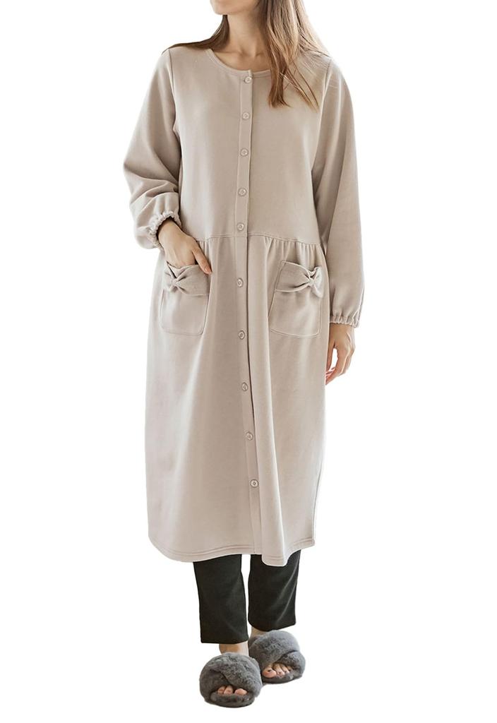 [Привлекательный дизайн с расслабленным, непринужденным ощущением. Рекомендуется также для ношения во время беременности] Этот комплект из пижамы и леггинсов цельного кроя отличается расслабленной, удобной посадкой, подчеркнутой объемными, свободными рукавами. Изготовлено из особенно легкого и мягкого мини-флиса, обратная сторона материала слегка начесана для теплого, пушистого ощущения на коже.. Идеально для всех сезонов, вплоть до прохладных ранневесенних месяцев.. Очень впитывающий и теплый, его удобно носить. Дизайн также делает его подходящим для домашней одежды, поэтому вам не придется беспокоиться о неожиданных гостях.. Большие карманы украшены лентами для тонкой милоты.