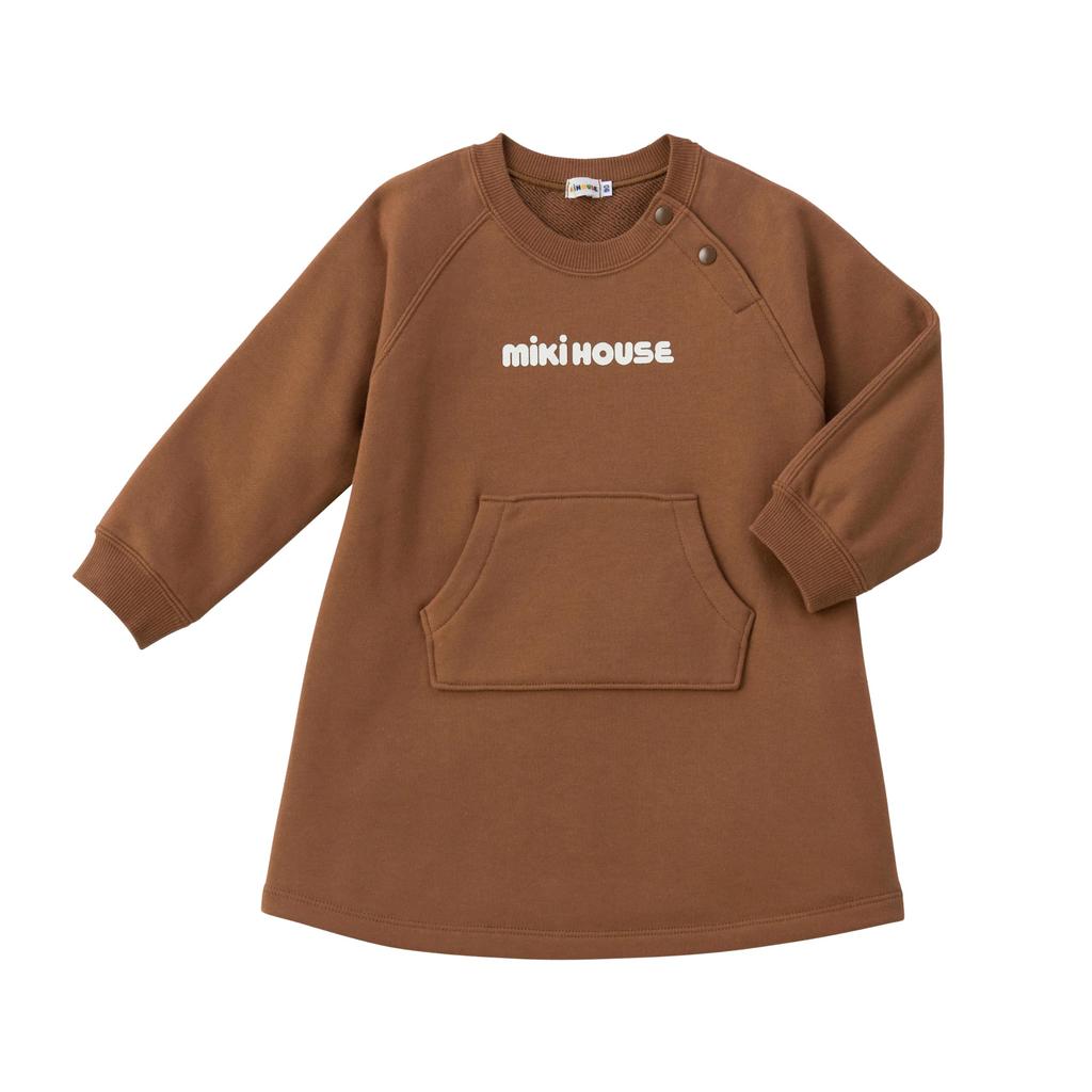 MIKI HOUSE Long Sleeve Dress with Logo and Solid Color Accent for and Suitable for School and Dark Web Exclusive Girls, Baby, Kids, Children, Daycare,