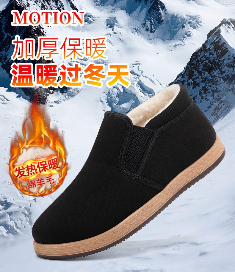 Зимние новые старые пекинские тканевые туфли мужские бархатные утолщенные теплые ботинки для папы мягкая подошва нескользящие шерстяные черные хлопковые туфли