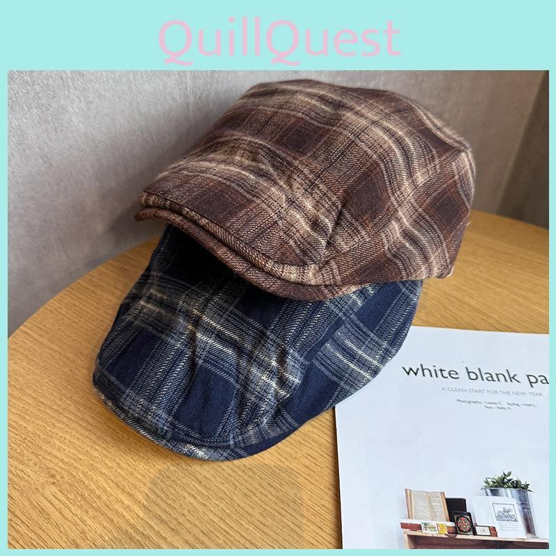 Ретро берет-кепка «утиный нос» в клетку гингем с вентиляцией и защитой от солнца для женщин