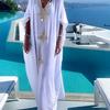 Новый Элегантный Кафтан с Детальной Вышивкой, V-образным Вырезом, Свободного Кроя, Бохо, Пляжный, Белый, с Рукавами Летучая Мышь, Элегантная Солнцезащитная Пляжная Накидка, Женский Купальник