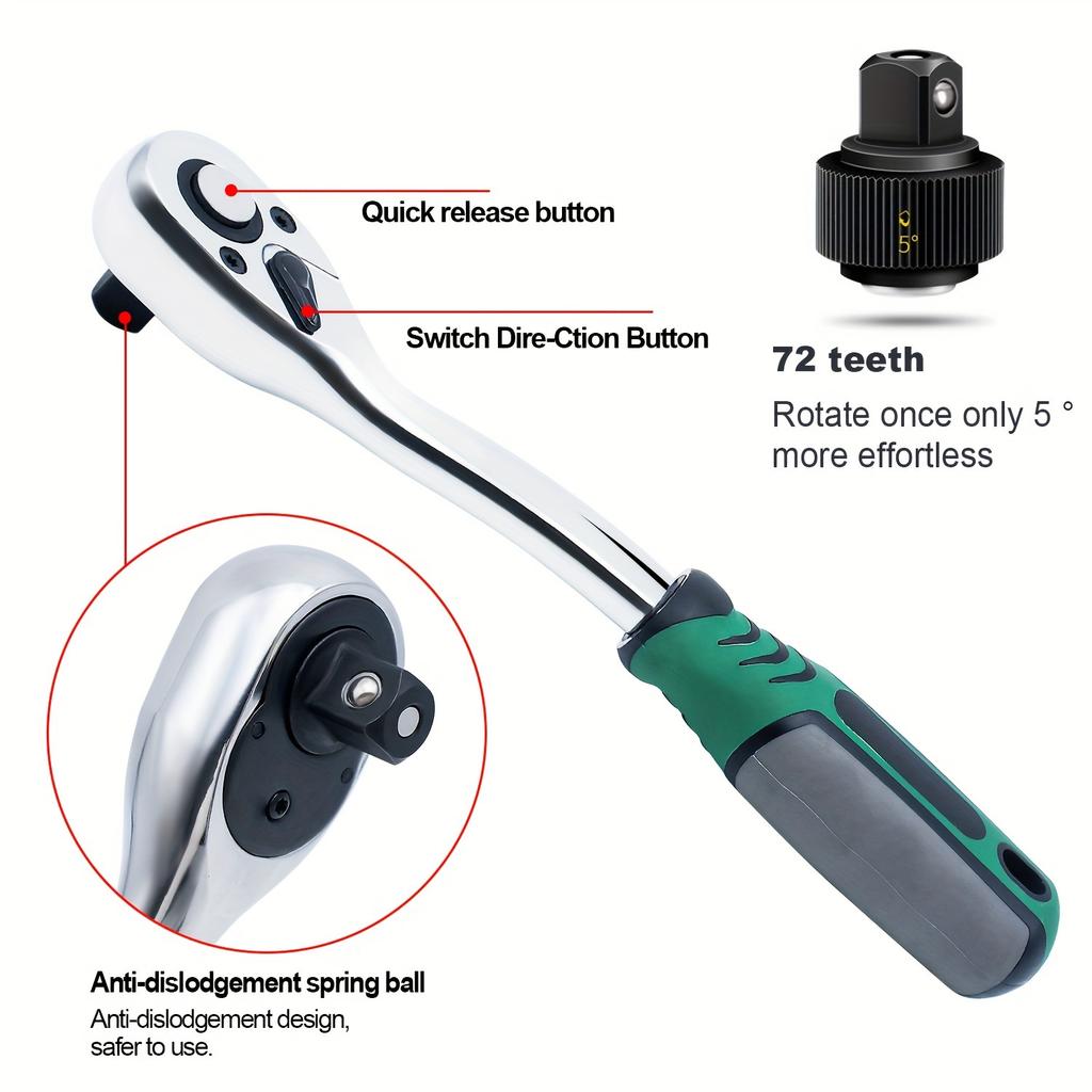 Набор торцевых головок 29 шт. 72/24 зуба, трещоточный гаечный ключ 1/4", компактный набор головок для ремонта автомобиля, механический инструмент для ремонта дома