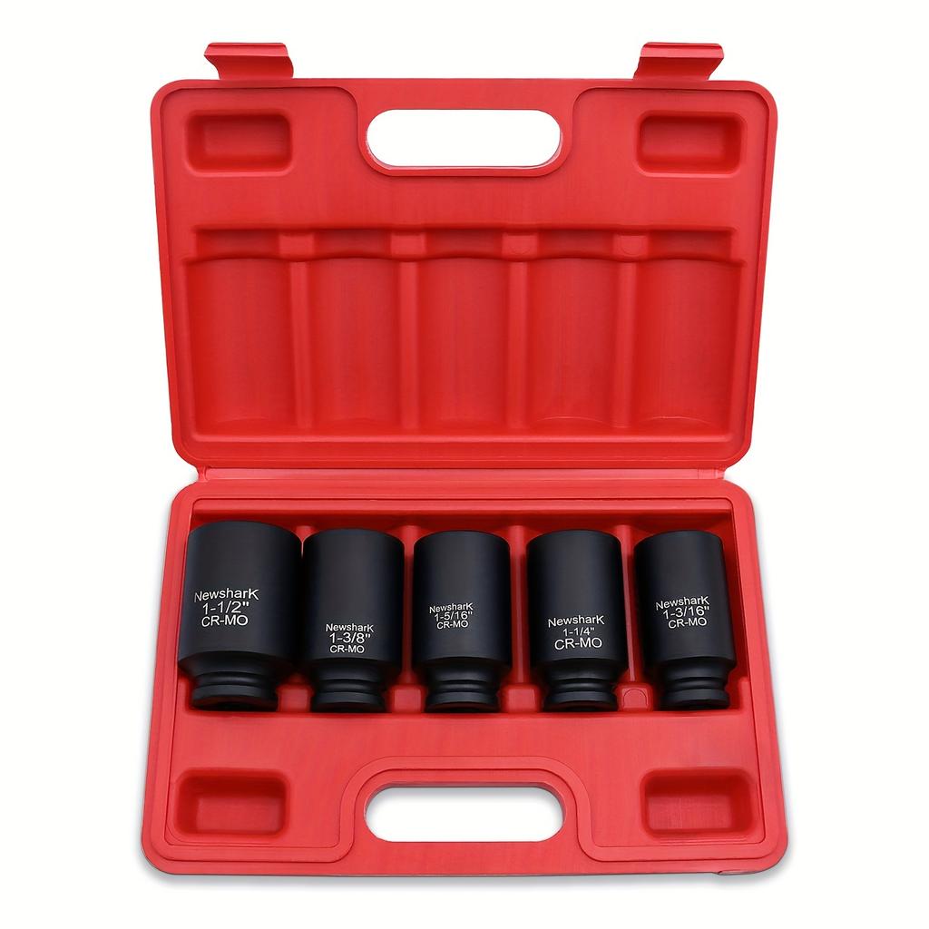 5 шт. Набор ударных головок для гаек ступицы оси с глубоким профилем, привод 1/2 дюйма, 6-гранные, SAE, CR-MO, сверхпрочный набор ударных головок с портативным кейсом