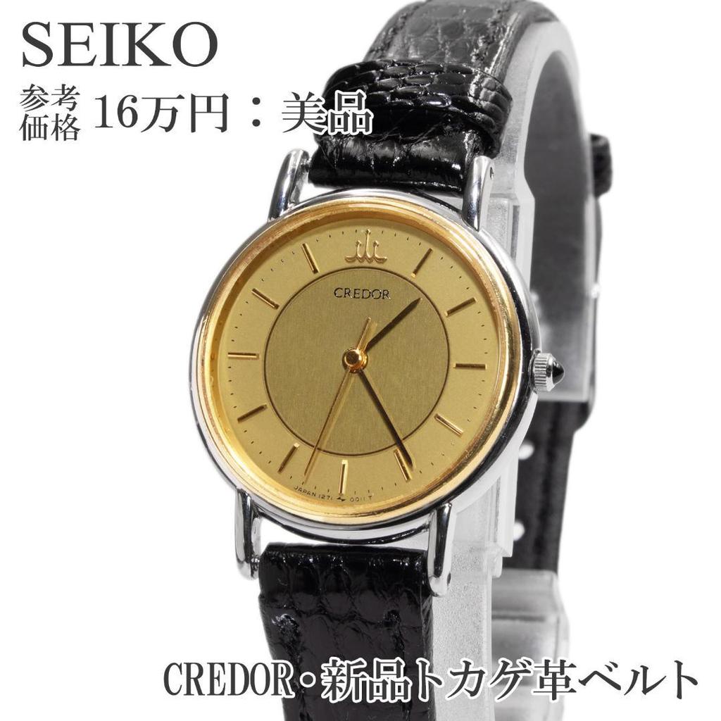 [Б/У] Женские часы Seiko Credor, 18 карат золота, Черный узор под ящерицу, Кожаный ремешок