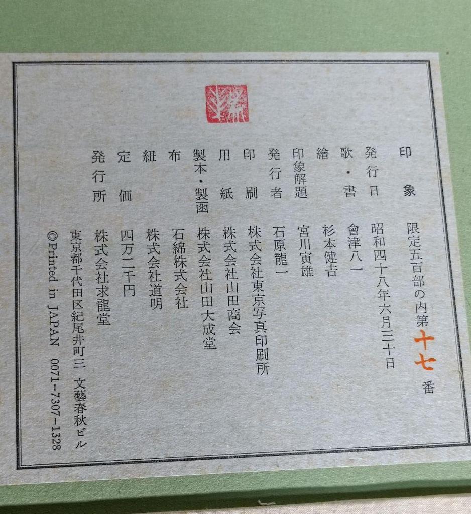 [Б/У] Впечатление / Песни, Каллиграфия, Живопись Айдзу Яити / Кэнкити Сугимото Книга об искусстве ограниченным тиражом 500 экземпляров / Редкая книга №. 17