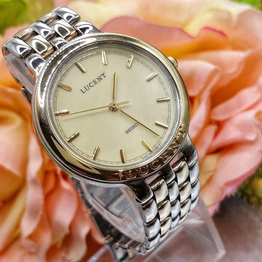 [USED] Seiko Lucent Pair Watch with Battery, Instructions, and Box, Silver Gold