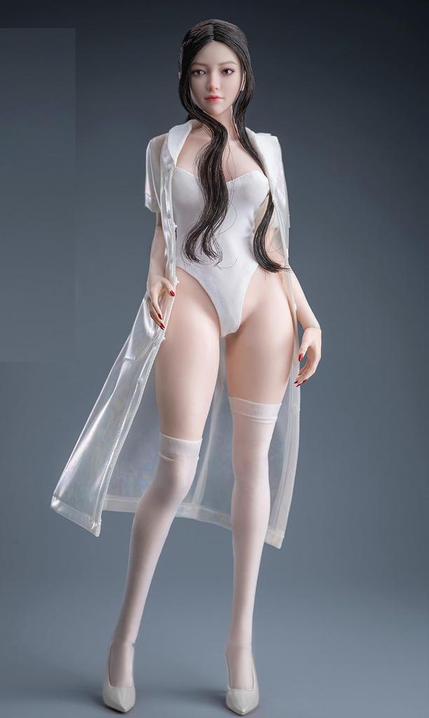[TOYBARJAPAN] Масштаб 1/6 Экшн Глаза Медсестра Юная Бисёдзё Азиатская Красавица Женская Голова, Одежда и Туфли на Высоком Каблуке Набор (Корпус не входит в комплект) (Белый А)