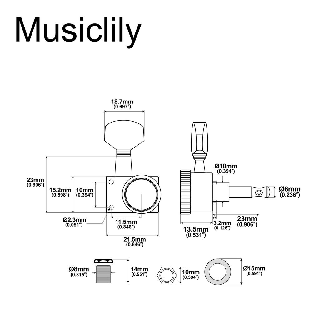 Колки Musiclily Pro с фиксацией на 2 пинах, 6 штук, для электрогитар Strat/Telecaster, хром