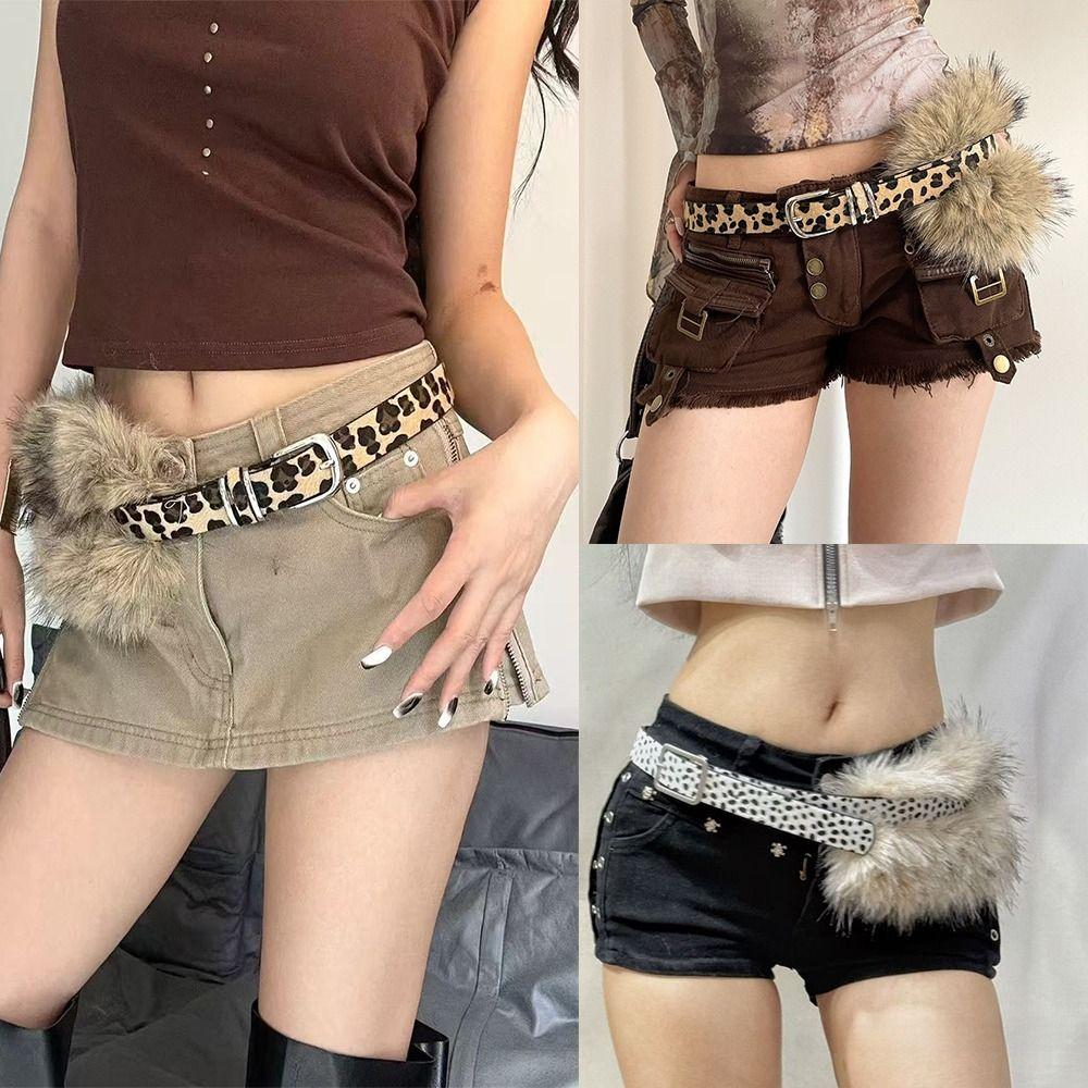 Faux Fur PU Leather Belt Leopard Y2K Waist Belt Sexy Vintage Waistband Waist Accessory — купить товар онлайн с бесплатной доставкой по всему миру!