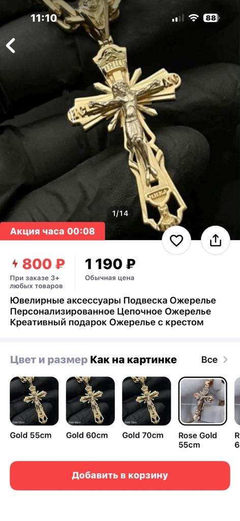 Аккуратный большой крестик. Только цепочка слабовата. Жду нормальную с Joom.