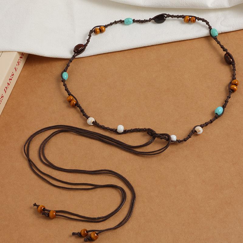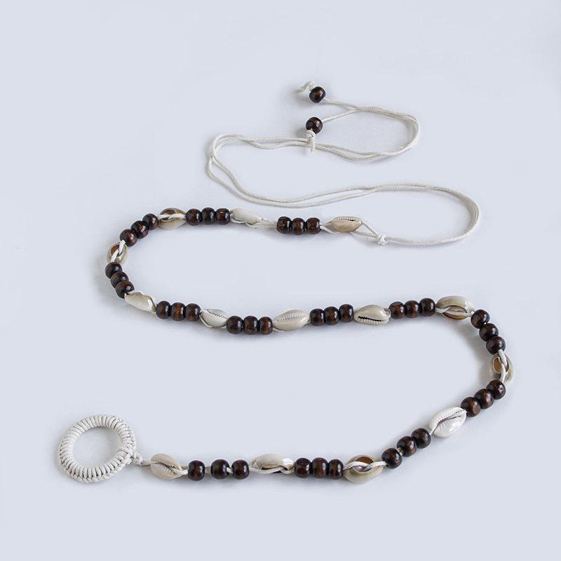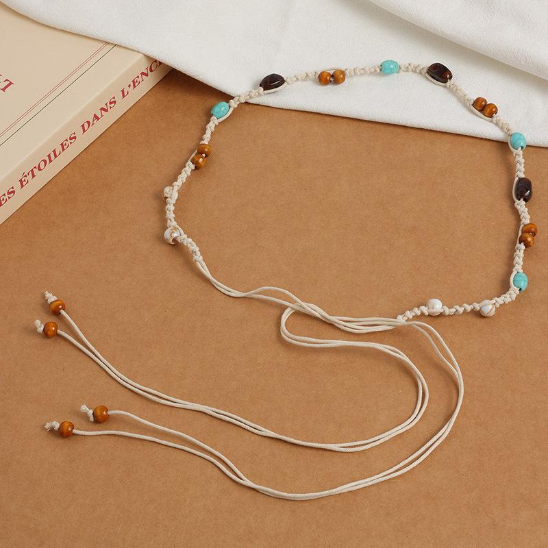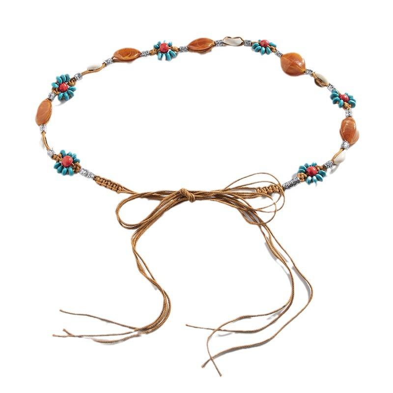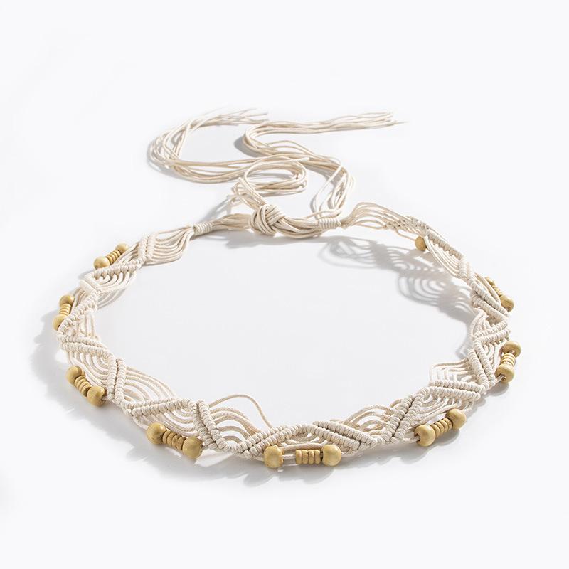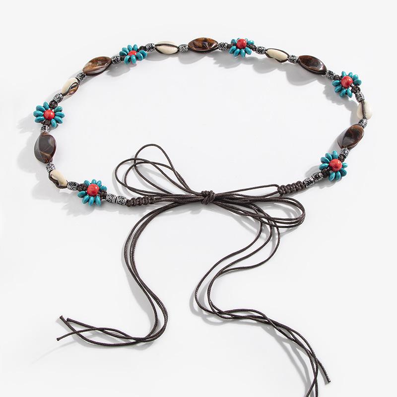 Богемный стиль цветы плетение узловатый этнический стиль ручная работа деревянные бусины женский пояс досуг стиль для отпуска красивая поясная веревка