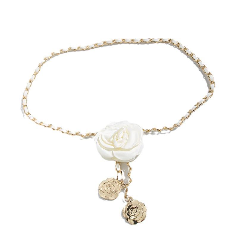 Модная милая поясная цепочка Элегантная поясная цепочка с камелией Текстурная декоративная поясная цепочка для платья Ханфу