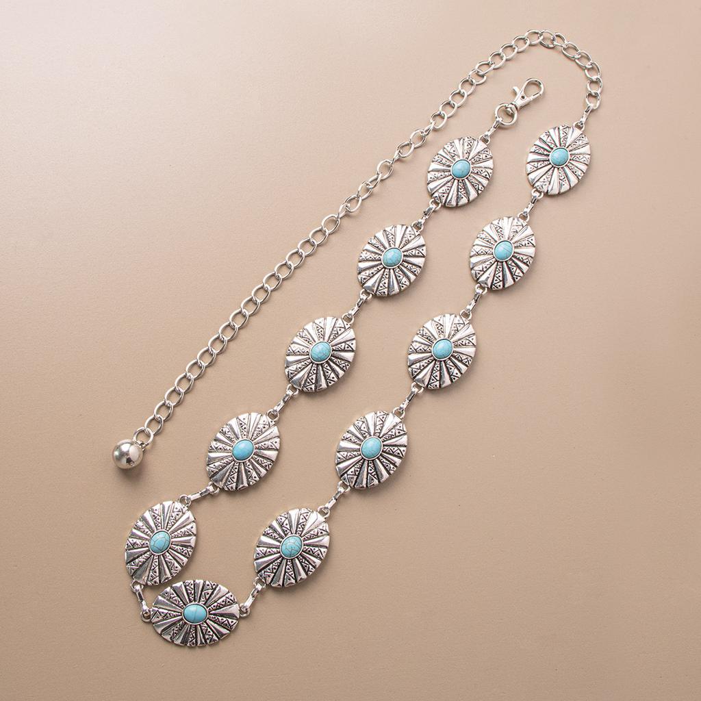 Новый Западный Большой Бирюзовый Ретро Богемный Стиль Металлическая Поясная Цепь Женский Пояс