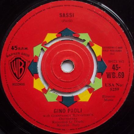 7inch Record GINO PAOLI / EMILIO PERICOLI - Sassi / Al Di La 45WB69 Warner Bros. Re 1962 UK Pop Used