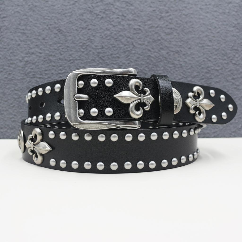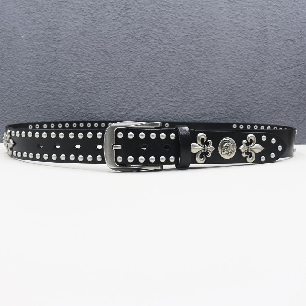 Первый слой коровьей кожи Новый ремень с заклепками в виде черепа Натуральная кожа Мужской ремень Женский ремень из чистой коровьей кожи Универсальный декоративный ремень