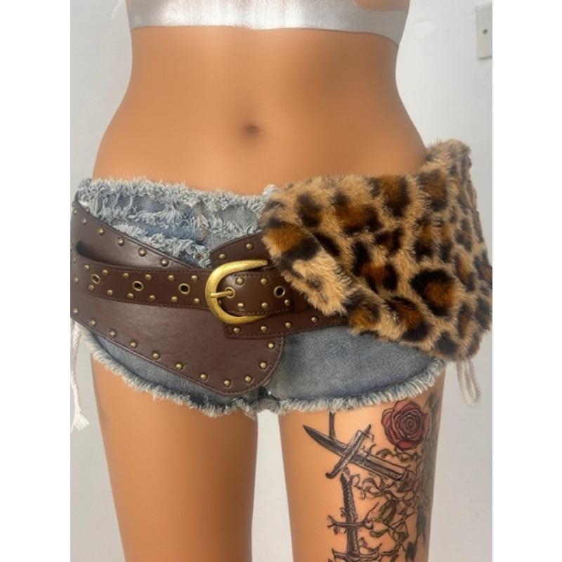 Новый плюшевый бесшумный ремень-пояс в стиле панк с заклепками и леопардовым принтом, представляющий миллениальскую горячую девушку из Европы и Америки