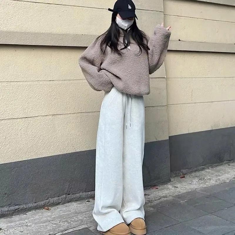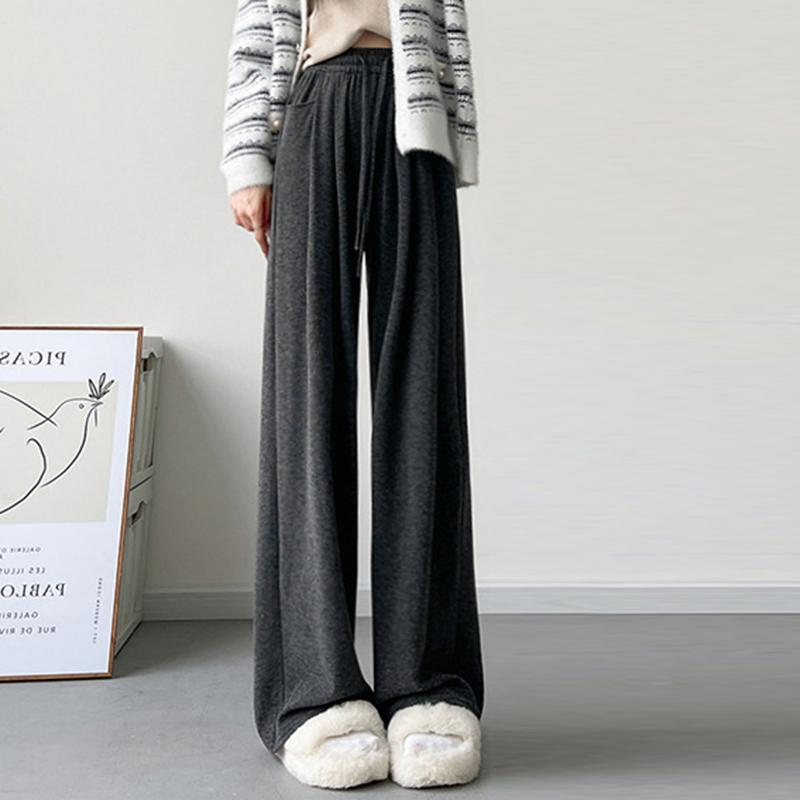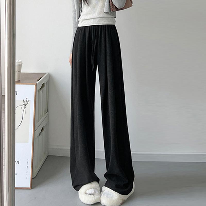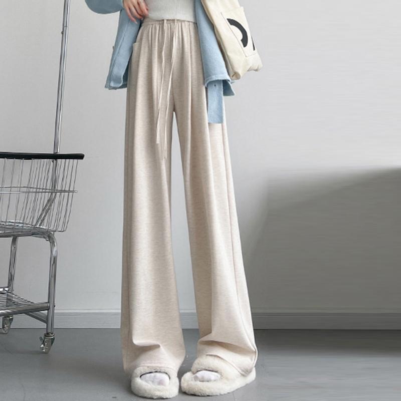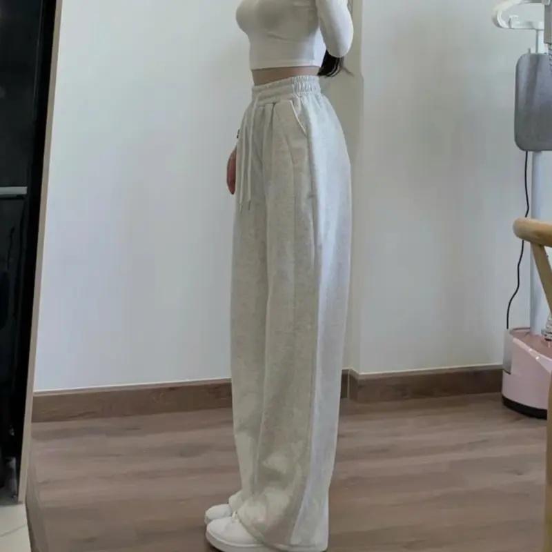 Весенне-осенние повседневные женские брюки обычного широкого кроя, модные брюки на высокой талии со шнурком и карманами