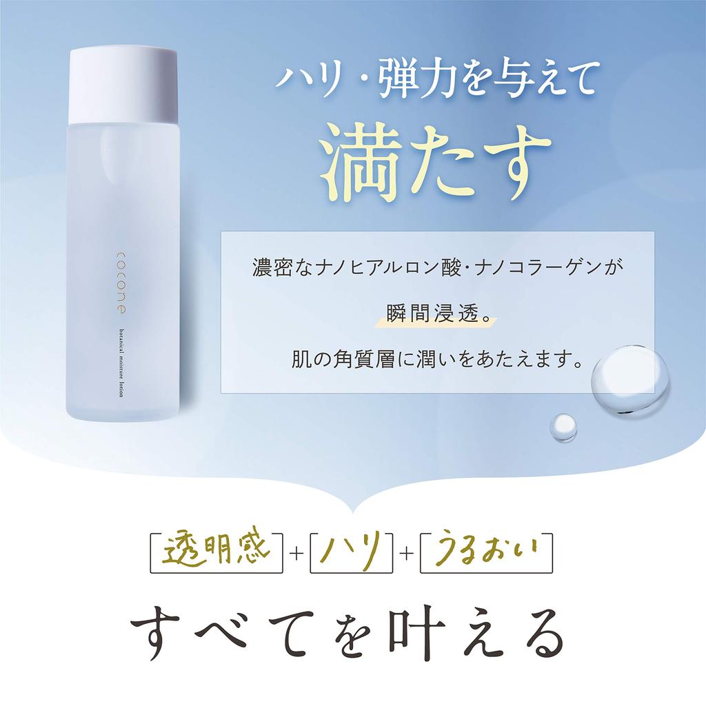 ✨[Новый лосьон из серии cocone] "cocone Botanical Moisture Lotion" - это ботанический лосьон, изготовленный из более чем 85% ингредиентов натурального происхождения. Богатая гиалуроновая кислота и коллаген проникают*1. Он увлажняет кожу и обеспечивает тщательный антивозрастной уход*2. Пожалуйста, попробуйте.. *1 До рогового слоя *2 Уход, соответствующий возрасту