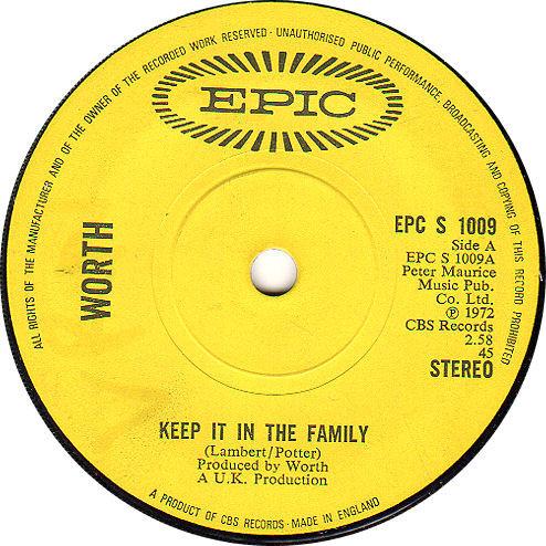 7inch Record WORTH (2) - Keep It In The Family EPCS1009 Epic 1972 UK Rock Used