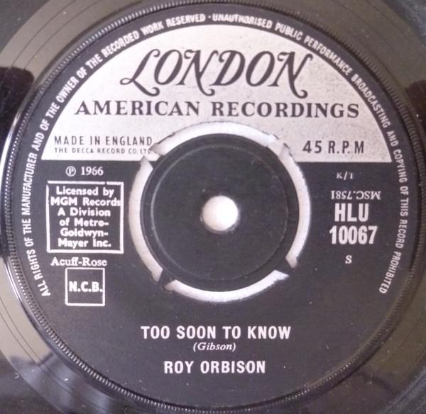 7inch Record ROY ORBISON - Too Soon To Know HLU10067 London Records 1966 UK Rock Used