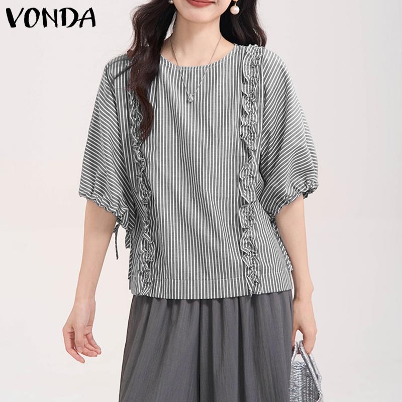 VONDA Женская блузка с отложным воротником, рукавом 3/4, в полоску, с оборками, повседневная, свободного кроя