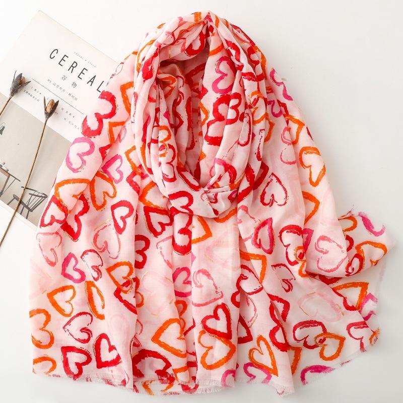 Розовый Сердечный Женский Вискозный Шарф Летняя Пляжная Шаль Ощущение Хлопка и Льна Кисточка Пашмина Мусульманский Хиджаб Накидка Леди