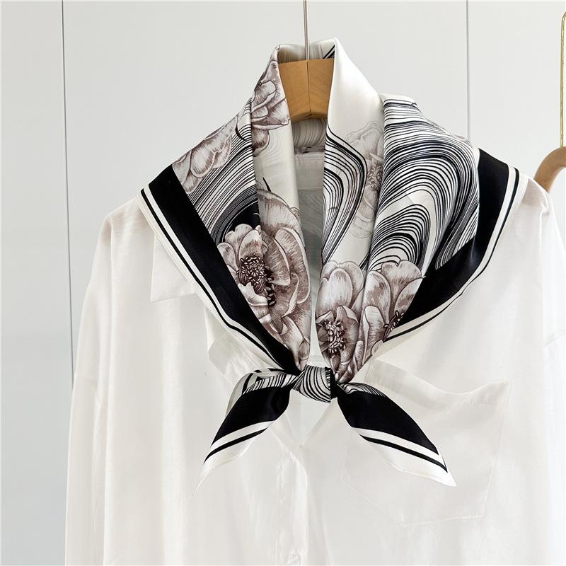 100% Silk Scarf Women's Spring Summer Fashion Versatile 12 MM Silk Scarf 65cm Medium Square Scarf Shape Decorative Shawl
