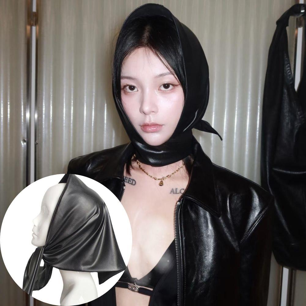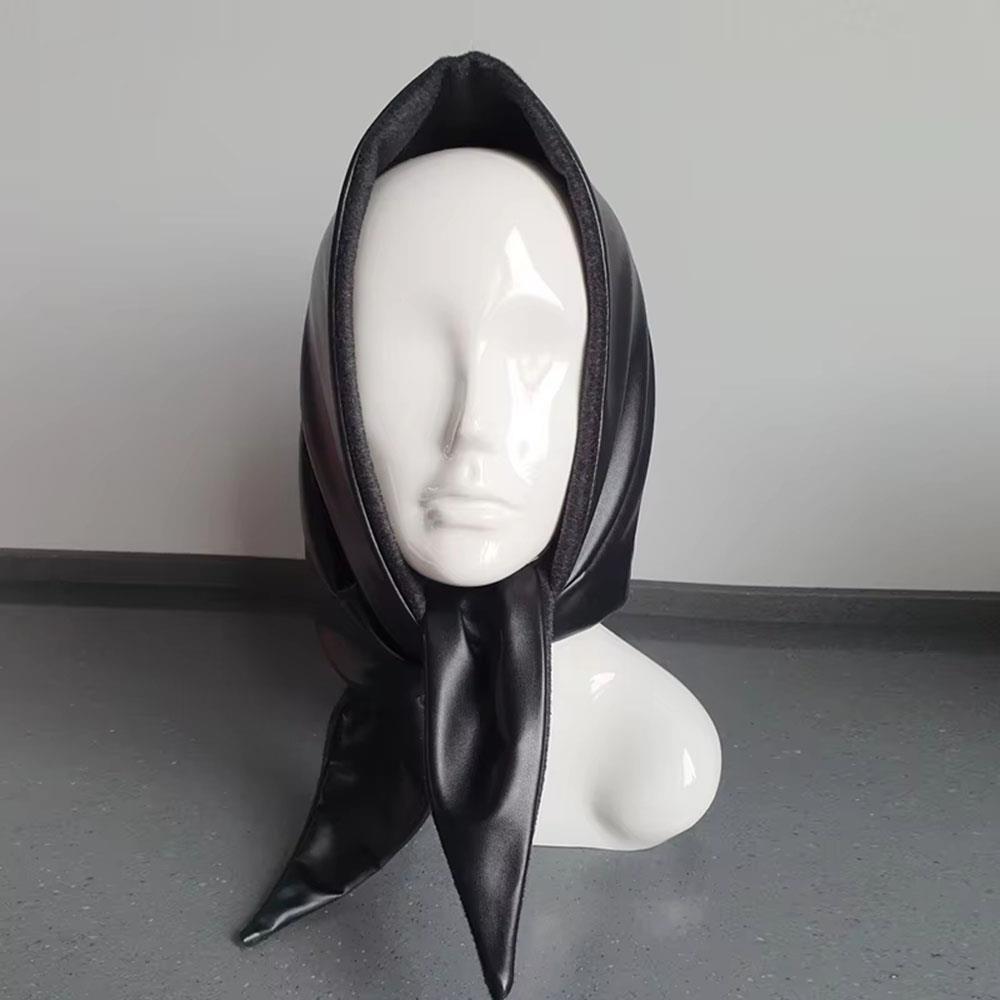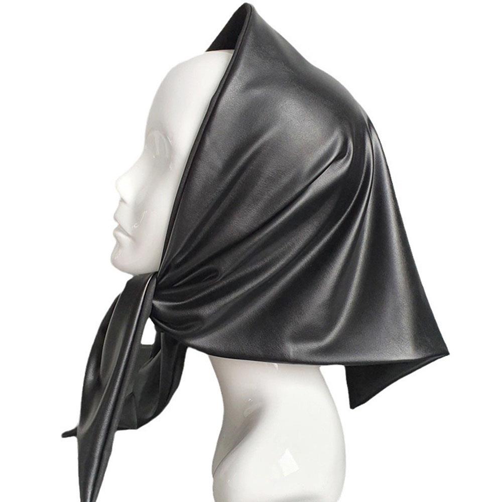 Женский дизайнерский большой шарф, треугольный шарф из искусственной кожи, хиджаб, черная бандана, платок на голову, шаль, обертывания для головы, головные уборы