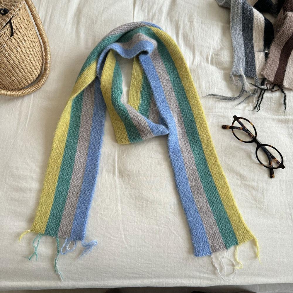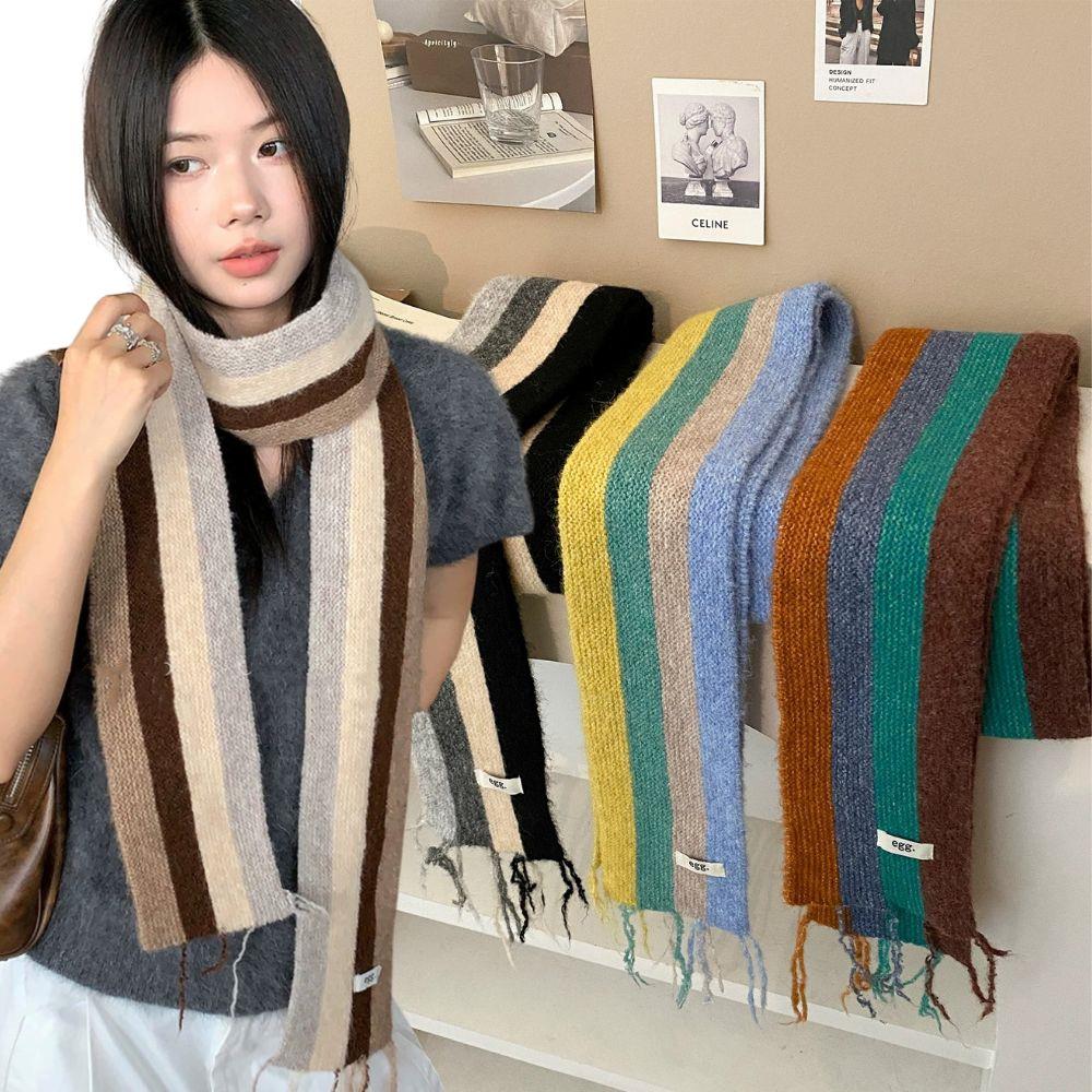 Вязаный шарф в стиле Y2k с цветными блоками, женский кашемировый шерстяной шарф, украшение Харадзюку, шейный платок, тонкий узкий длинный шарф в корейском стиле