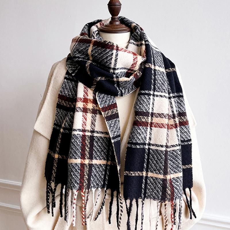 Зимний шарф для женщин Имитация кашемира Теплый клетчатый шарф-пашмина Накидки Женский Толстый Мягкий Буфанда Кисточки Шаль Пончо Стола