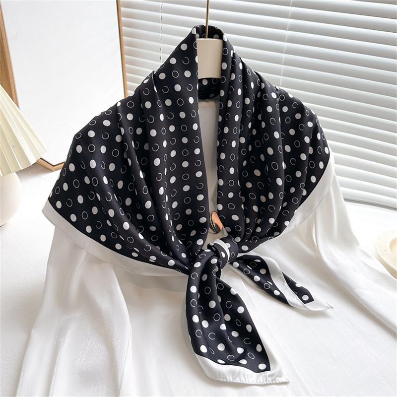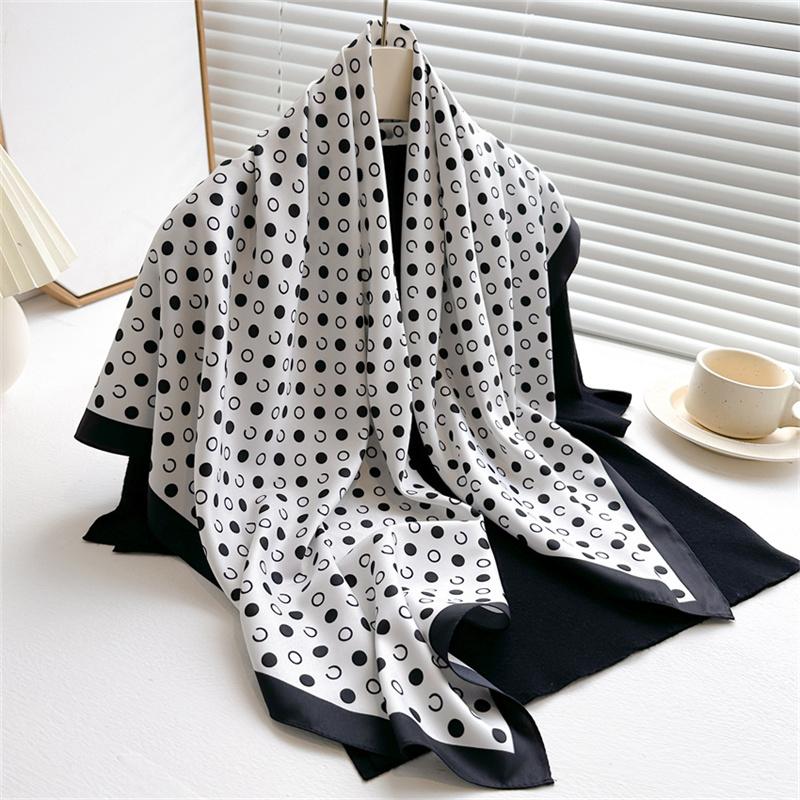Роскошный корейский модный шелковый шарф с принтом в горошек 90 см твиловые шарфы с буквами круглый большой квадратный шарф новая шаль платок