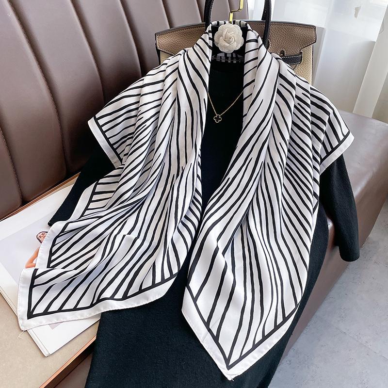Мода Роскошь 90*90см Квадратный Женский Шелковый Шарф Дизайн с Принтом Полоски Хиджабы Женский Шейный Платок Платки Накидка Повязка на Голову Бандана