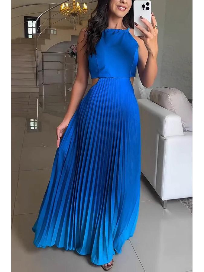 Европейское и американское платье-градиент без рукавов с открытой спиной и плиссировкой, 2025
