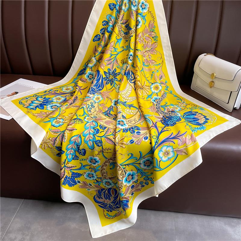 Новый шелковый платок Твиловый шелковый платок Корейский стиль Цветочный Большой шаль 90см Квадратный платок Универсальный платок Солнцезащитный головной платок