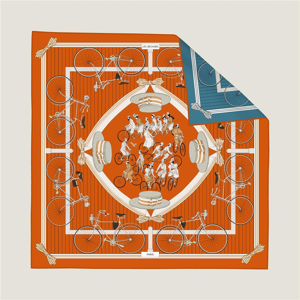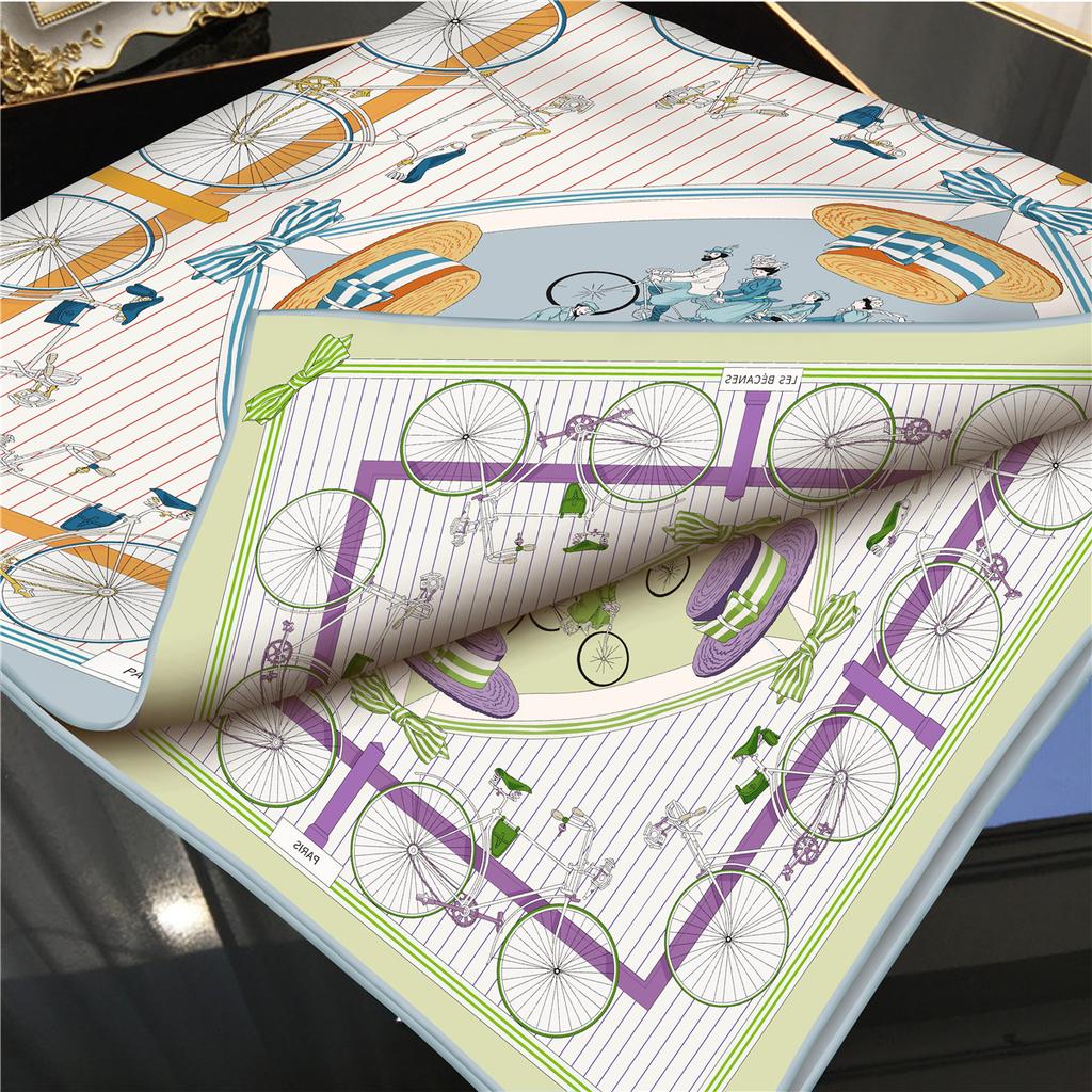 Брендовые шелковые платки Платок из твила с принтом велосипеда Женские шали Дизайнерский люксовый хиджаб Модный квадратный платок с подрубленными краями Шейный платок