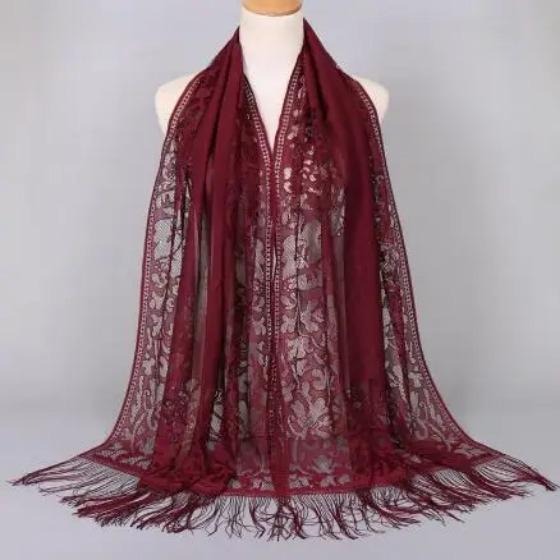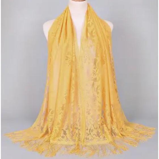 Элегантный женский хлопковый полиэстеровый шарф-шаль с цветочным кружевом и кисточками, для вечеринки, свадьбы, кружевная вуаль, Индия, арабский, мусульманский хиджаб, шарфы
