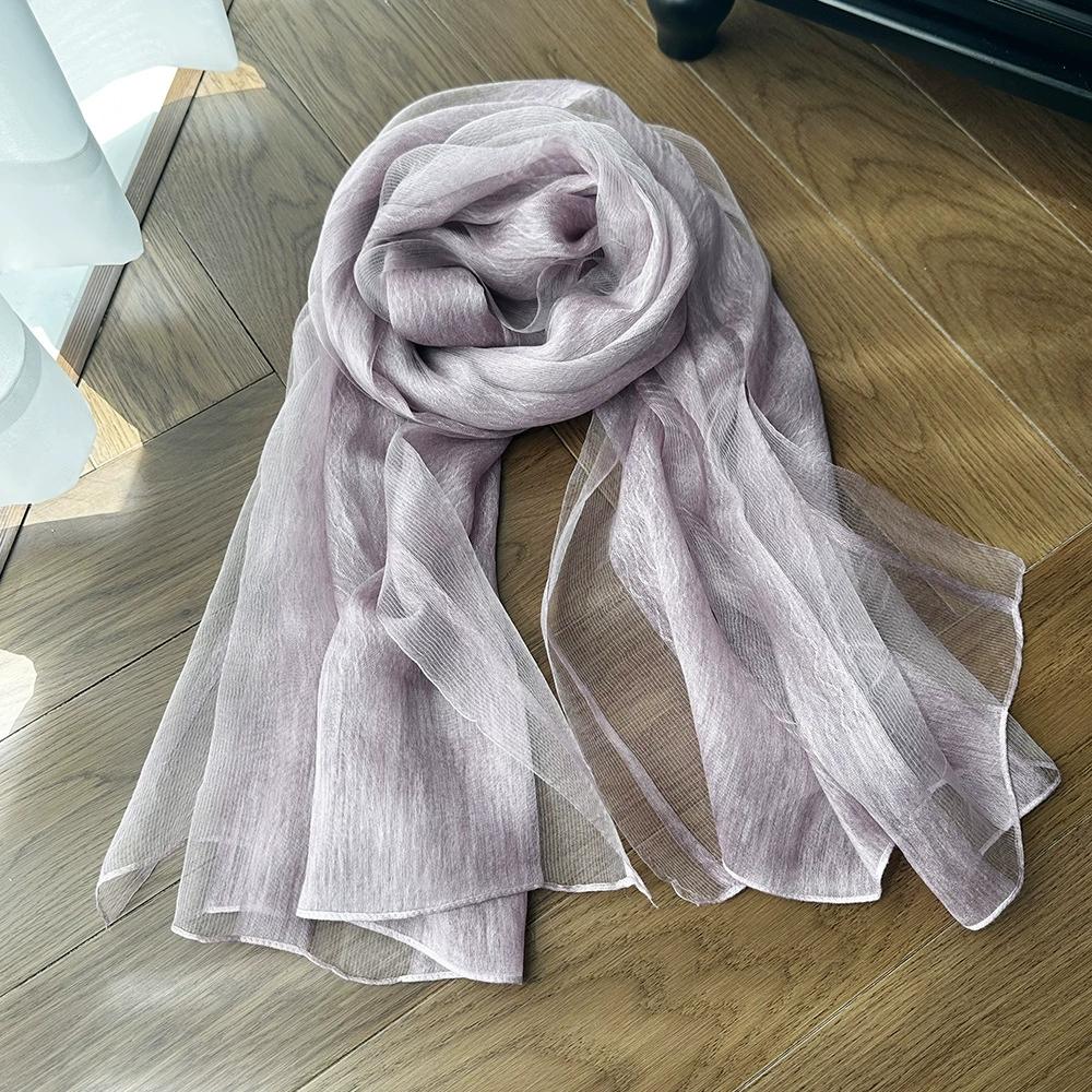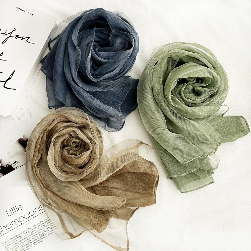 Однотонный шарф из тутового шелка, длинный, солнцезащитный шелковый шарф для женщин, для украшения, с узором «водяная волна», шарфы и шали