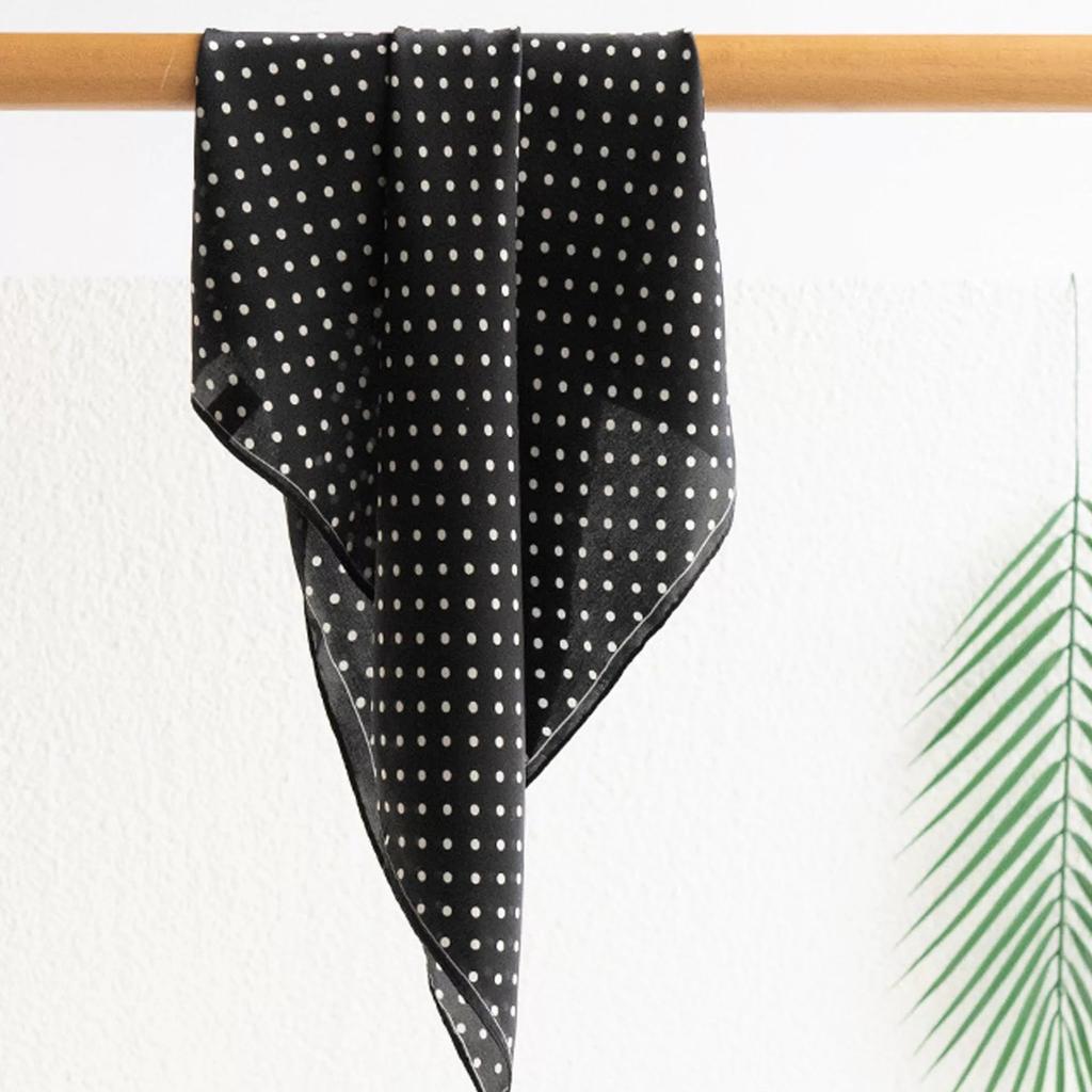 Квадратный платок 53 см из 100% шелка-мальберри с черным горошком, декоративная повязка для волос, галстук, маленький шейный платок для женщин
