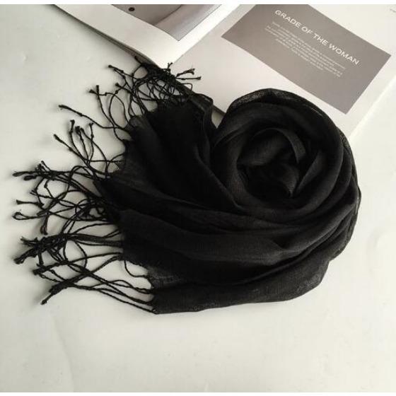 55*180см Модный Мягкий Однотонный Женский 100% Лен Кисточки Шарф Летний Дорожный Солнцезащитный Длинный Палантин Элегантный Хиджаб Женский Фуляр