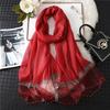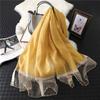 Мода Новый Женский Шарф-Шаль из Смеси Шелка и Хлопка Однотонный Мягкий Дикий с Бисерной Отделкой Тюрбан Подходит Роскошный Женский Дорожный Шарф для Защиты от Солнца