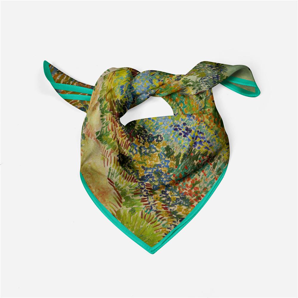53СМ Маленький Квадратный Шарф Ван Гог Масляная Живопись Твиловый Сатин Женский Шейный Платок Женская Бандана Хиджаб Сумка Шейный Платок