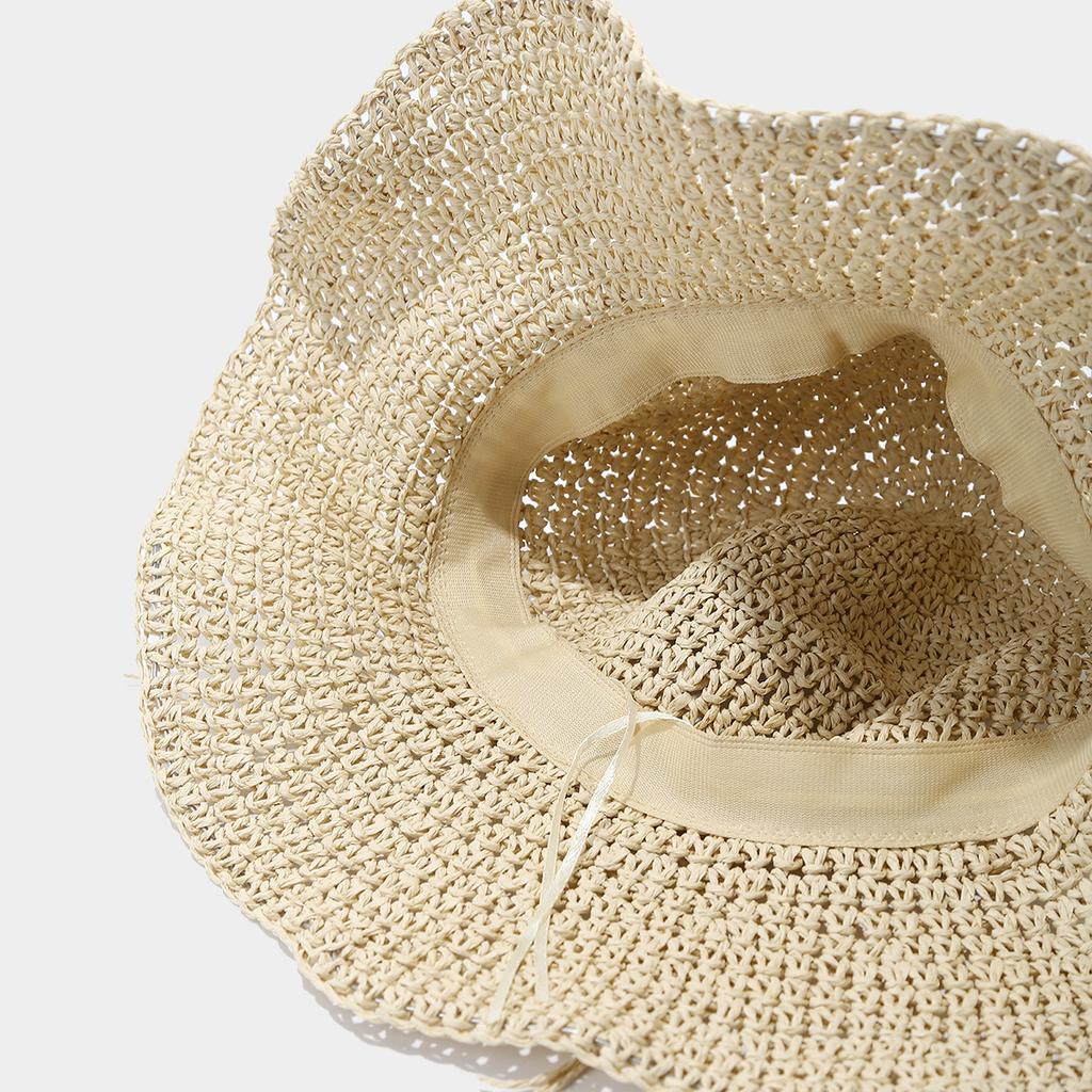 Летняя ажурная соломенная шляпа с широкими полями, дышащая, для защиты от солнца, вязаная крючком, для отпуска, женская пляжная шляпа