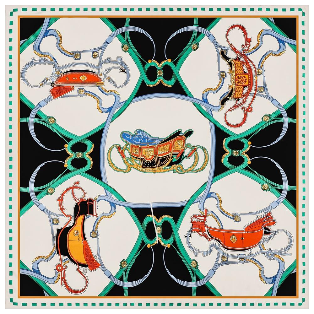 Шелковый шарф Женские большие шали Цепь Кисточка Карета Столы Квадратная бандана Роскошный платок Хиджаб Шарф Женский фуляр 130СМ
