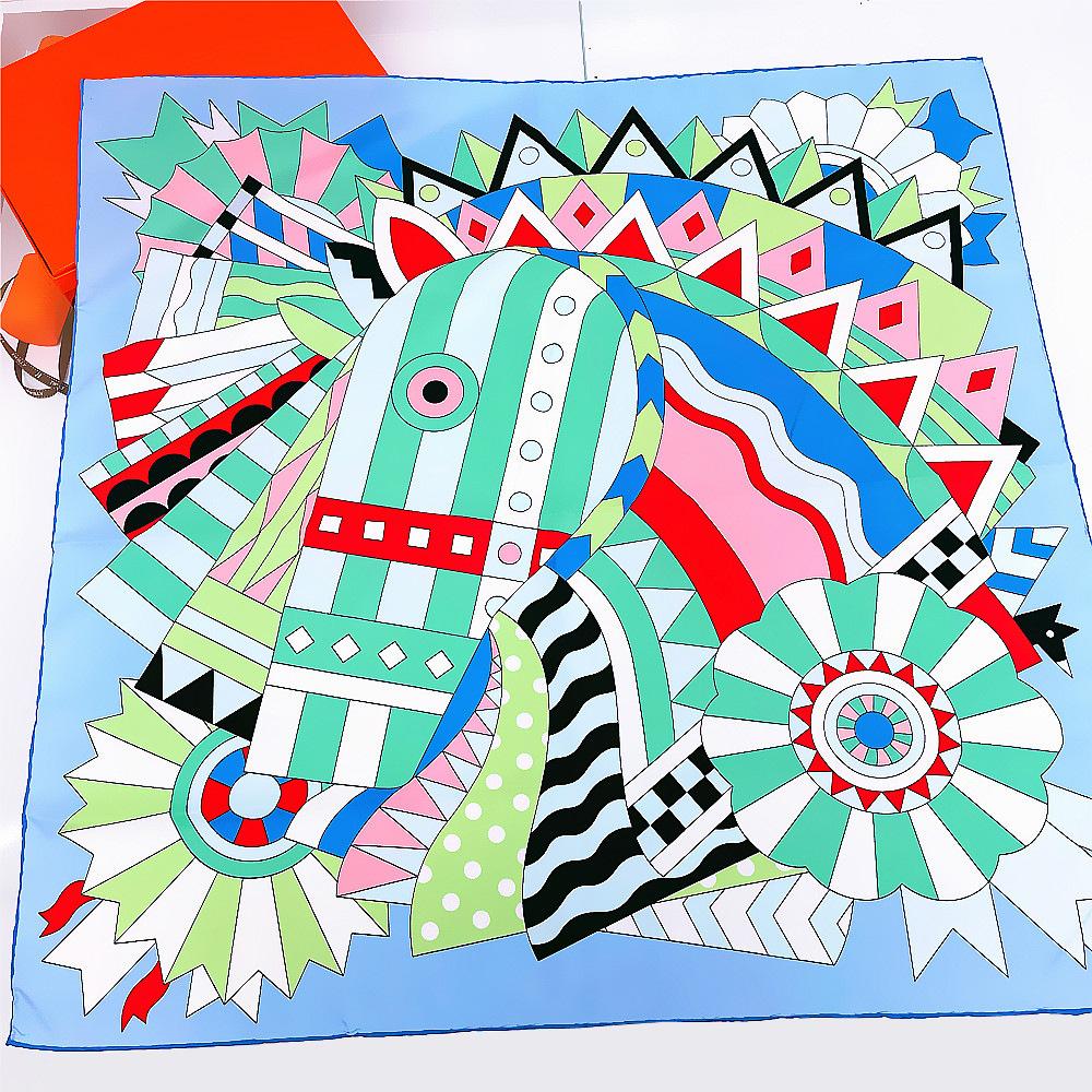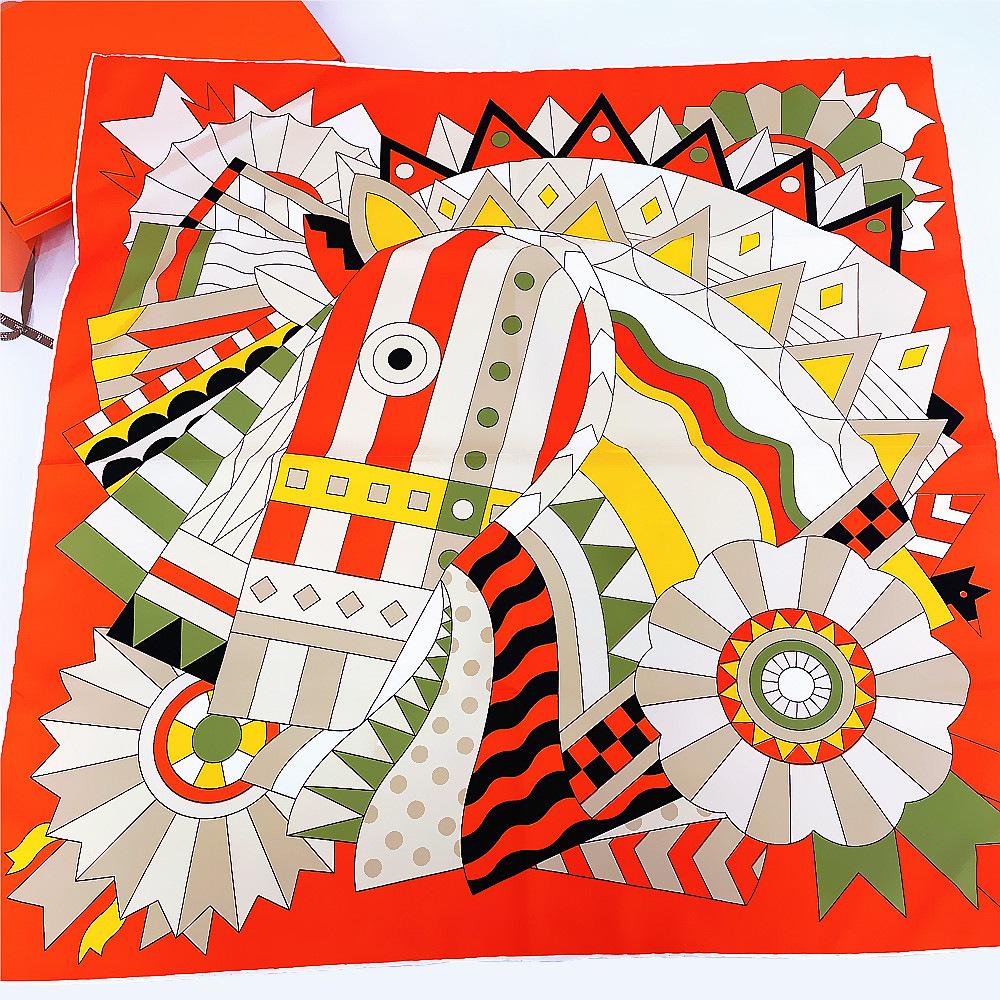 Новый женский шарф ручной работы с эффектом кудрявого шелка 90 см, квадратный шарф из твила из конского шелка, шелковый шарф с ретро-принтом, шаль, повязка на голову