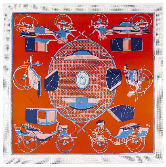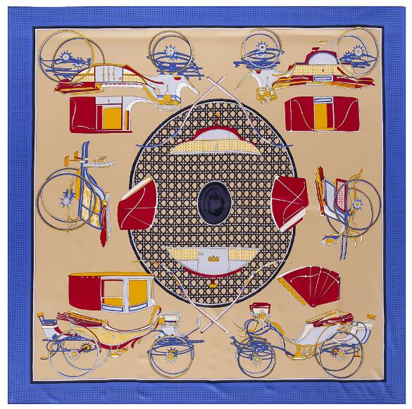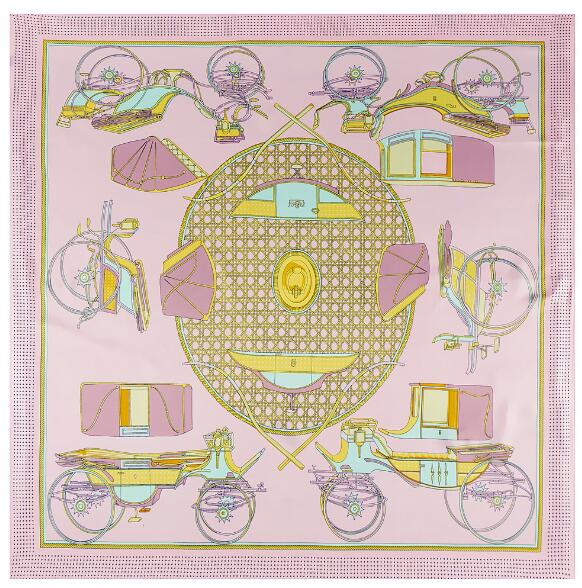 Роскошный бренд Твиловый шелковый платок Тыква Придворная карета Квадратный платок Новый дизайн Принт Косынка Женский шейный платок Шарфы 130см